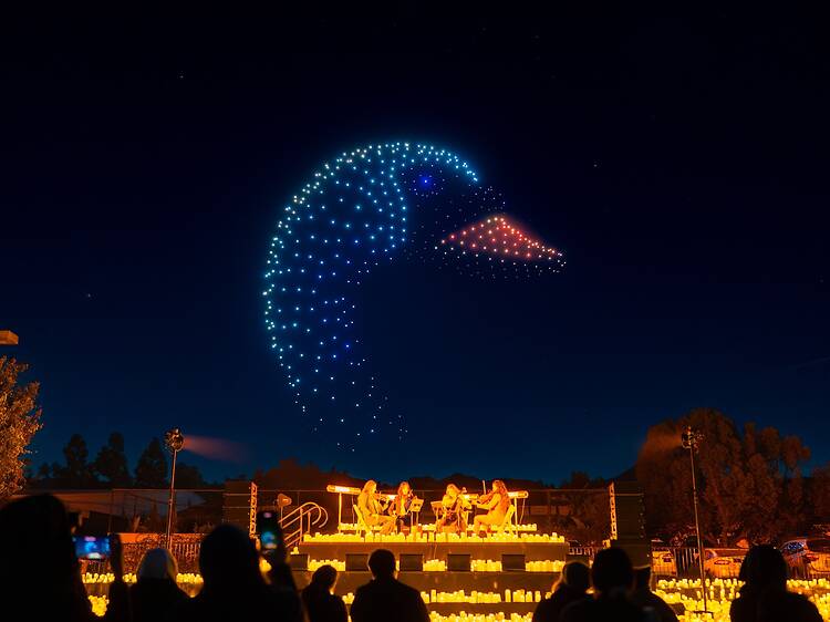 La fórmula és simple i espectacular a parts iguals: un ensemble de corda interpreta obres immortals com Les quatre estacions de Vivaldi o El llac dels cignes de Txaikovski, mentre més de 1.000 drons sincronitzats dibuixen figures lluminoses al cel nocturn. Estrelles, flors i formes sorprenents apareixen i es transformen en temps real, creant una coreografia aèria hipnòtica que converteix la música en imatge.
