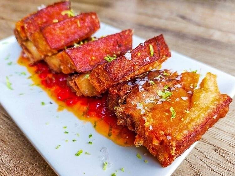 Tampoc hi falten els clàssics: bombes, seitons, torreznos, galtes, mandonguilles i bacallà amb samfaina. Menció especial per a l’assortiment de croquetes casolanes i, en concret, les de gambes amb allioli de gamba (beneïda redundància). Bon ambient i preus raonables: val la pena.
