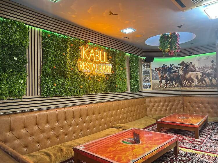 Si la vostra carn preferida és el xai, heu d’anar al Kabul, un dels pocs restaurants afganesos de la ciutat. I com és la gastronomia d’allà, us preguntareu. Doncs, és un mix d’influències de l’Àsia Central, l’Orient Mitjà i el subcontinent indi (kofta, kebab, pulao, tikka, naan, etc.), amb plats d’arròs, carn (sobretot xai i pollastre), llegums i verdures. Sabors aromàtics però no excessivament picants, espècies suaus, herbes fresques i salses a base de iogurt.