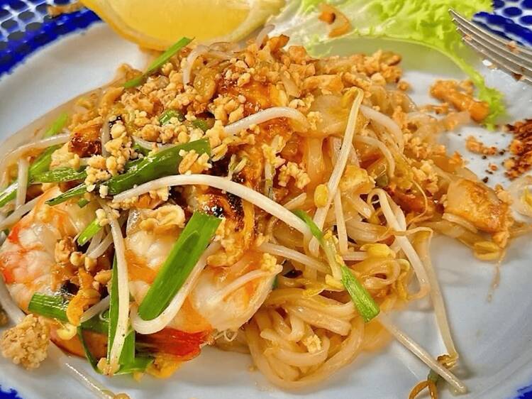Entre els imprescindibles hi ha el Pad Krapow Goong: ‘pad’ significa saltejat i ‘krapow’, alfàbrega tailandesa. Aquí el preparen en versió intensa i picant, sempre acompanyat d’arròs jasmin i coronat amb un ou fregit amb les puntes extra cruixents.