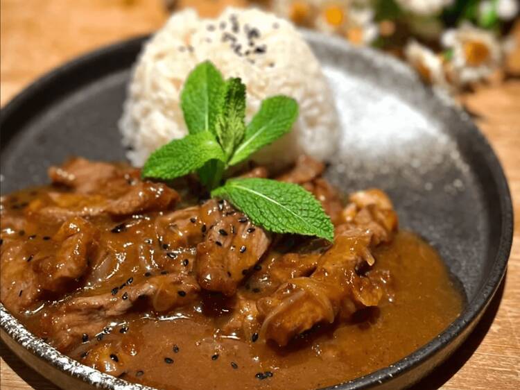 Obert a finals del 2023, tot i que el nom del local remeti inevitablement a la famosíssima sopa vietnamita, aquí la cosa va molt més enllà del pho. La carta és àmplia i ve de gust recórrer-la sense presses: amanides amb mango fresc, rotllets amb farcits diversos, creps, entrepans banh mi, woks i curris aromàtics. Entre els imprescindibles, el bún bò nam bộ —aquesta amanida tèbia amb fideus d’arròs, vedella, herba llimona, cacauets, escalunyes fregides i un bon grapat d’herbes fresques— o el pollastre estofat amb herba llimona, sucós i fragant, servit amb arròs gessamí.