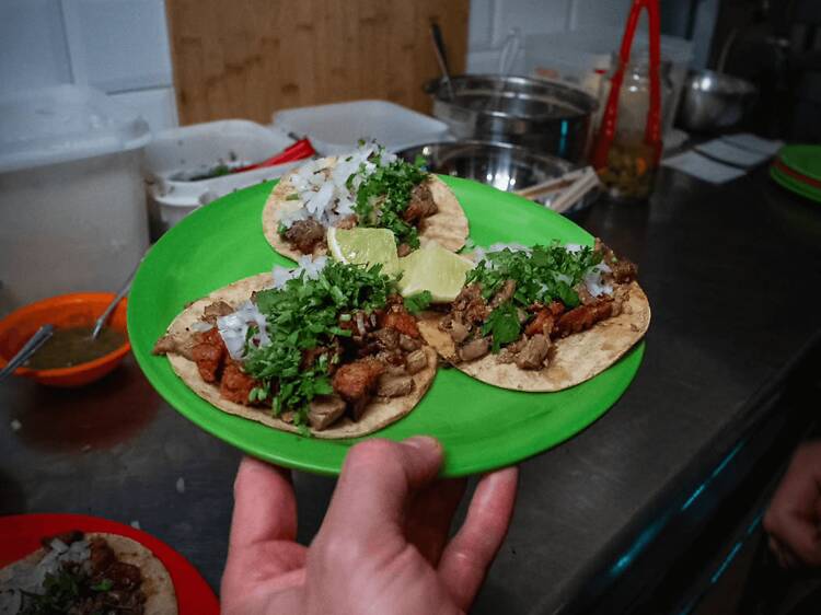 Entre mossegada i mossegada, un glop de cervesa mexicana —Corona, Modelo Especial, Negra Modelo i Pacífico—, i de tirador, michelada o mezcalita de mango.
